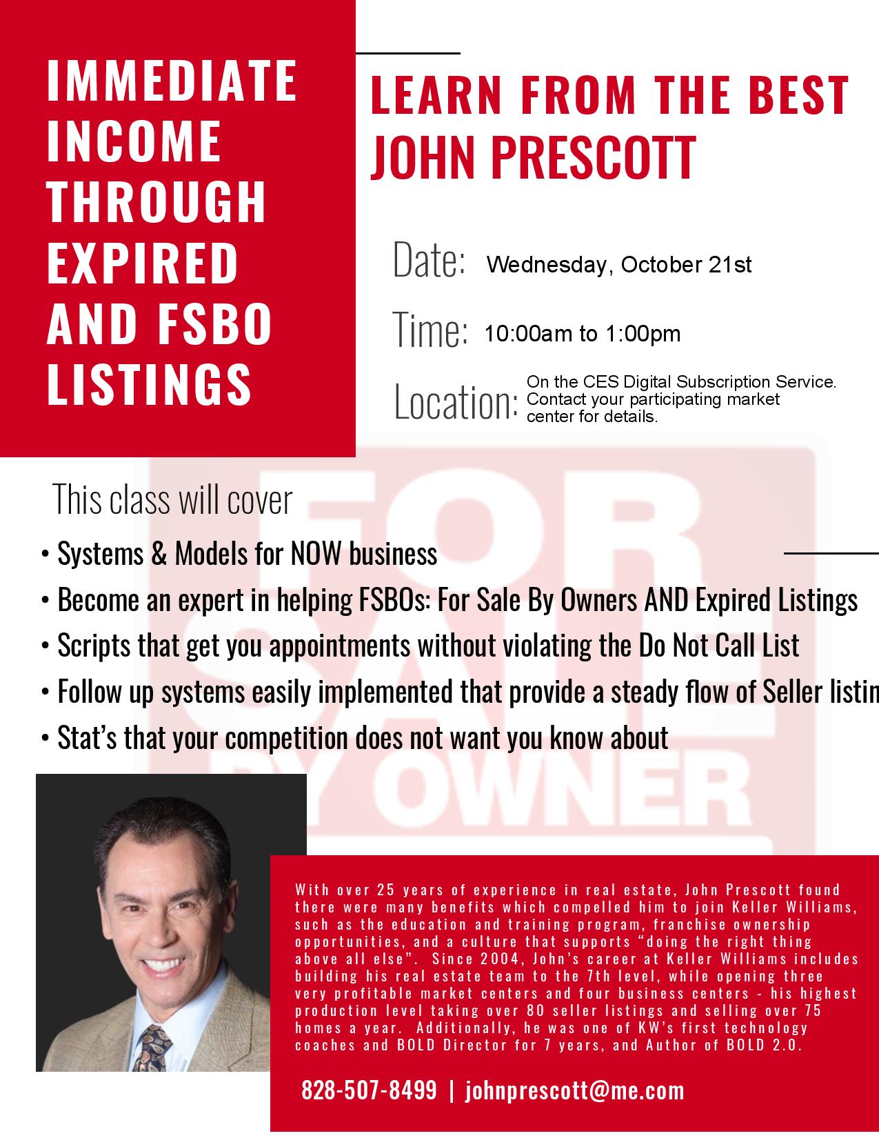 Don’t forget….John Prescott is coming to the CES Digital Subscription Service next week – Wednesday, 10/21. You won’t want to miss out! Check with your MC for registration information.