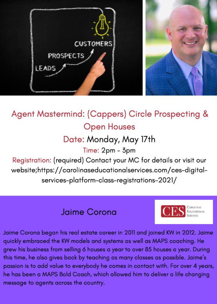 It’s Mastermind Monday! Join Jaime Corona this afternoon as he leads an Agent Mastermind around Circle Prospecting and Open Houses. Class starts at 2PM EST! Click here to register; https://carolinaseducationalservices.com/ces-digital…/