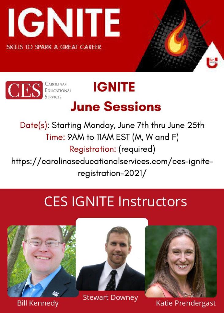 IGNITE June will be launching June 7th! Check with your MC for registration details or register thru our website; https://carolinaseducationalservices.com/ces-ignite…/