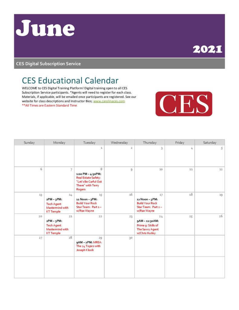 Before you head off for a long Memorial Day weekend – check out our CES Digital Platform June Calendar! We have some great classes coming up! You can check with your MC for registration details or register thru our website; https://carolinaseducationalservices.com/ces-digital…/