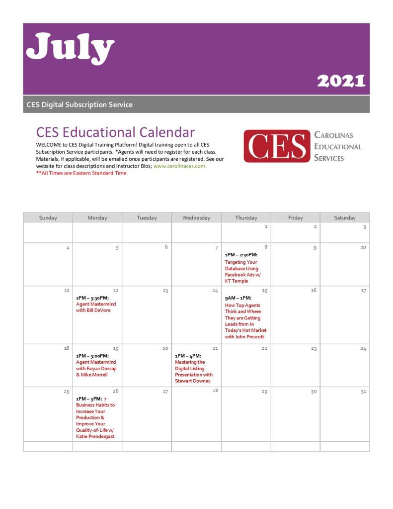 Check with your MC for registration details or register thru our website; https://carolinaseducationalservices.com/ces-digital-services-platform-class-registrations-2021/