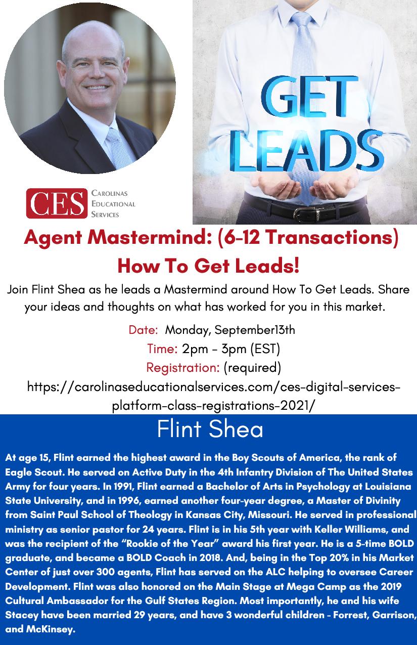 We have two great classes coming next week to the CES Digital Platform! First up, is our Mastermind Monday Series. Join Flint Shea as he Masterminds around How to Get Leads! Class starts at 2PM (EST) on Monday, September 13th.