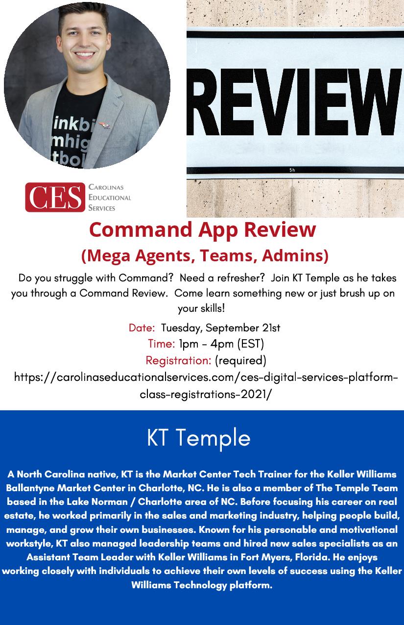 TODAY on the CES Digital Platform; Command App Review (Mega Team, Teams and Admins) with KT Temple! Class starts at 1PM (EST).