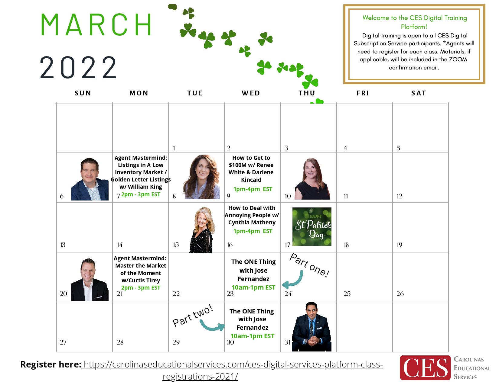 Take a look at what is coming to the CES Digital Platform in March! Mark your calendars and make sure you join us!