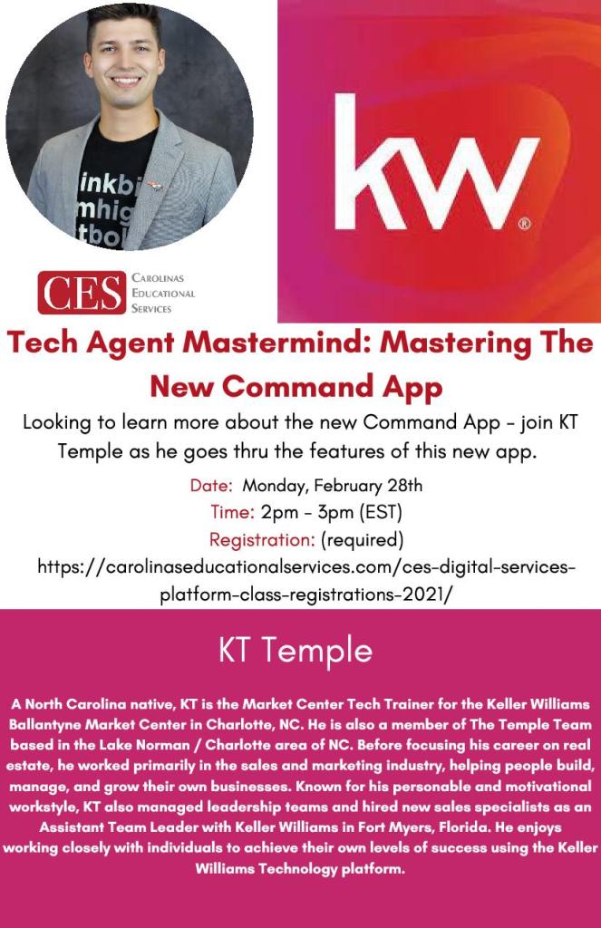 Don’t forget – TODAY on the CES Digital Platform – KT Temple with Tech Agent Mastermind: Mastering the New Command App! Class starts at 2PM!