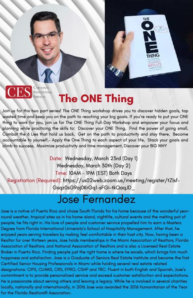 Don’t miss Day 1 of The ONE Thing with Jose Fernandez – TODAY! Class starts at 10AM (EST).