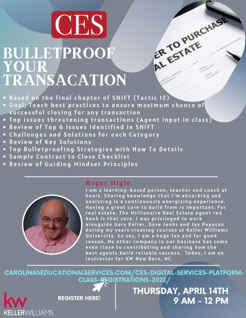 Don’t miss Roger’s debut on the CES Digital Platform with Bulletproof Your Transaction! Join Roger on Thursday, April 14th from 9AM to 12PM.