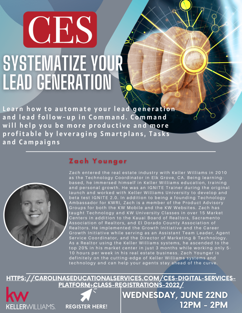 Next week Zack Younger will be on the CES Digital Platform with Systematize Your Lead Gen! Join us Wednesday, June 22nd from 12PM – 2PM (EST).