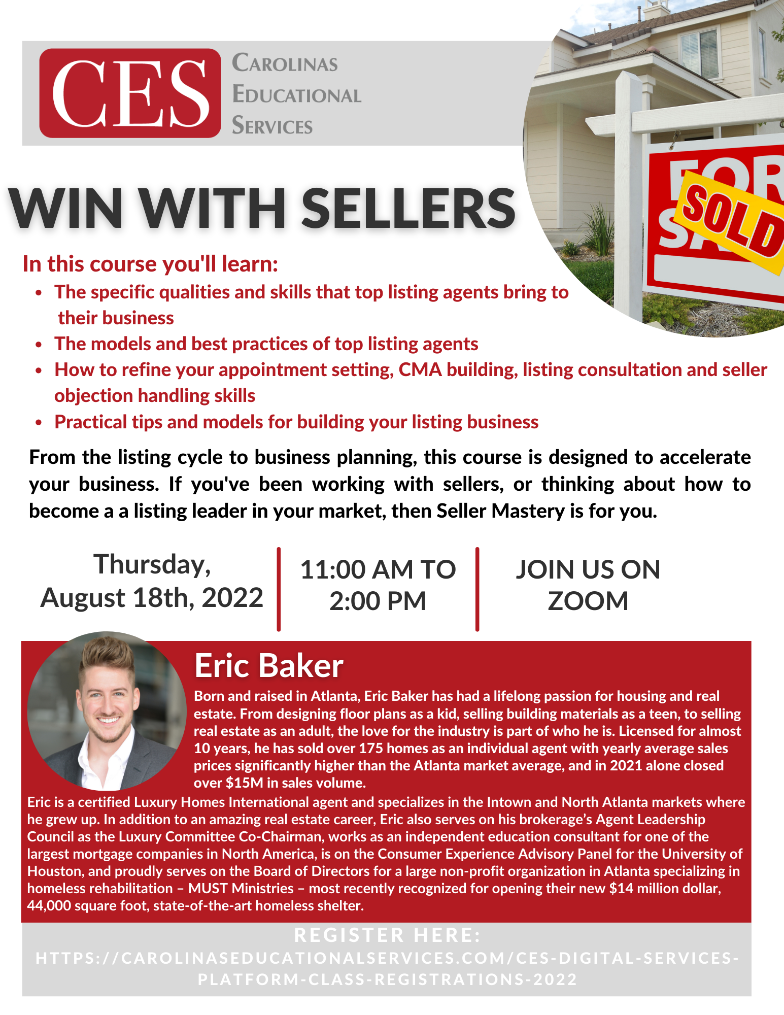Coming tomorrow, 8/19 on the CES Digital Platform – Win with Sellers with Eric Baker! Class starts at 11AM!