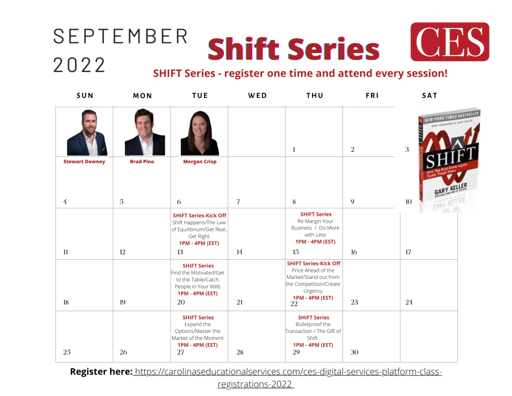 The SHIFT series is coming this month to the CES Digital Platform! Session 1 is Tuesday, September 13th at 1PM!