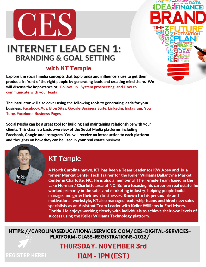 Join KT Temple on Thursday, November 3rd at 11AM for Internet Lead Generation 1: Branding & Goal Setting!