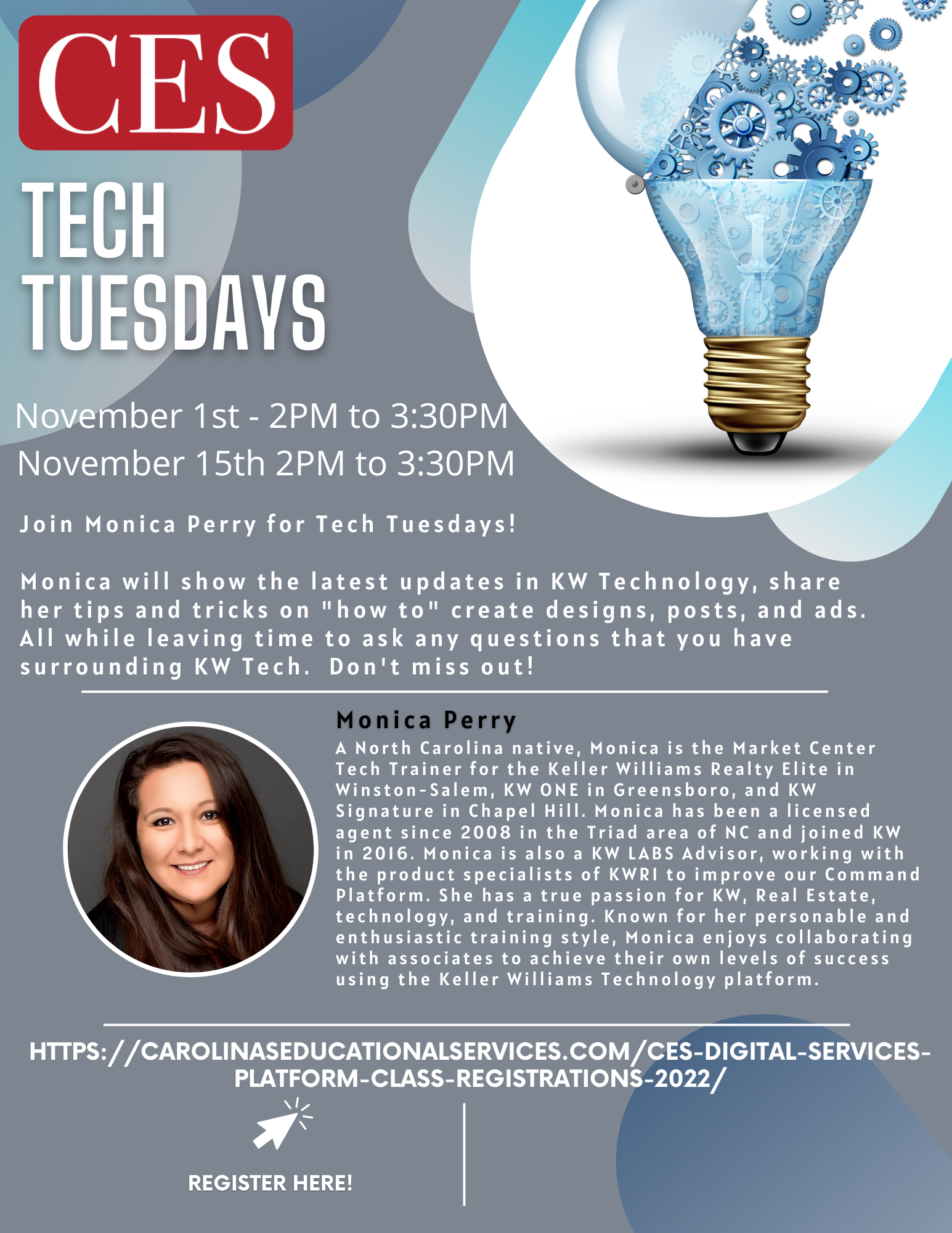 Check with your MC for registration details or you can register through our website; https://carolinaseducationalservices.com/ces-digital-services-platform-class-registrations-2022/