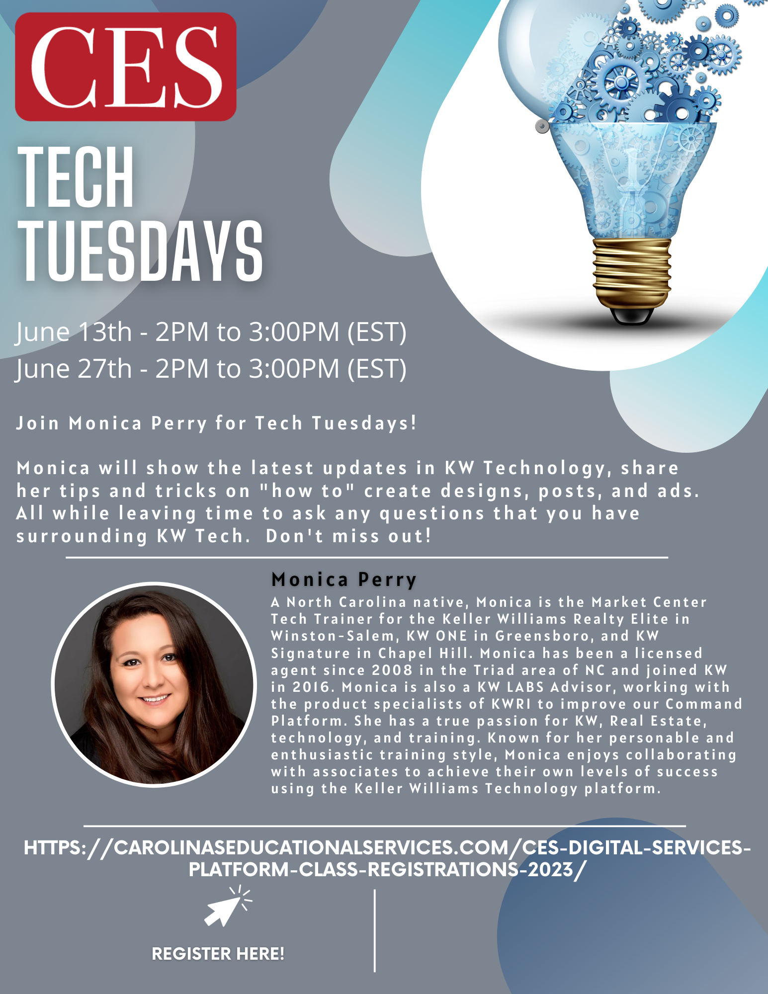 Today is Tech Tuesday with Monica Perry! Class starts at 2pm (EST).