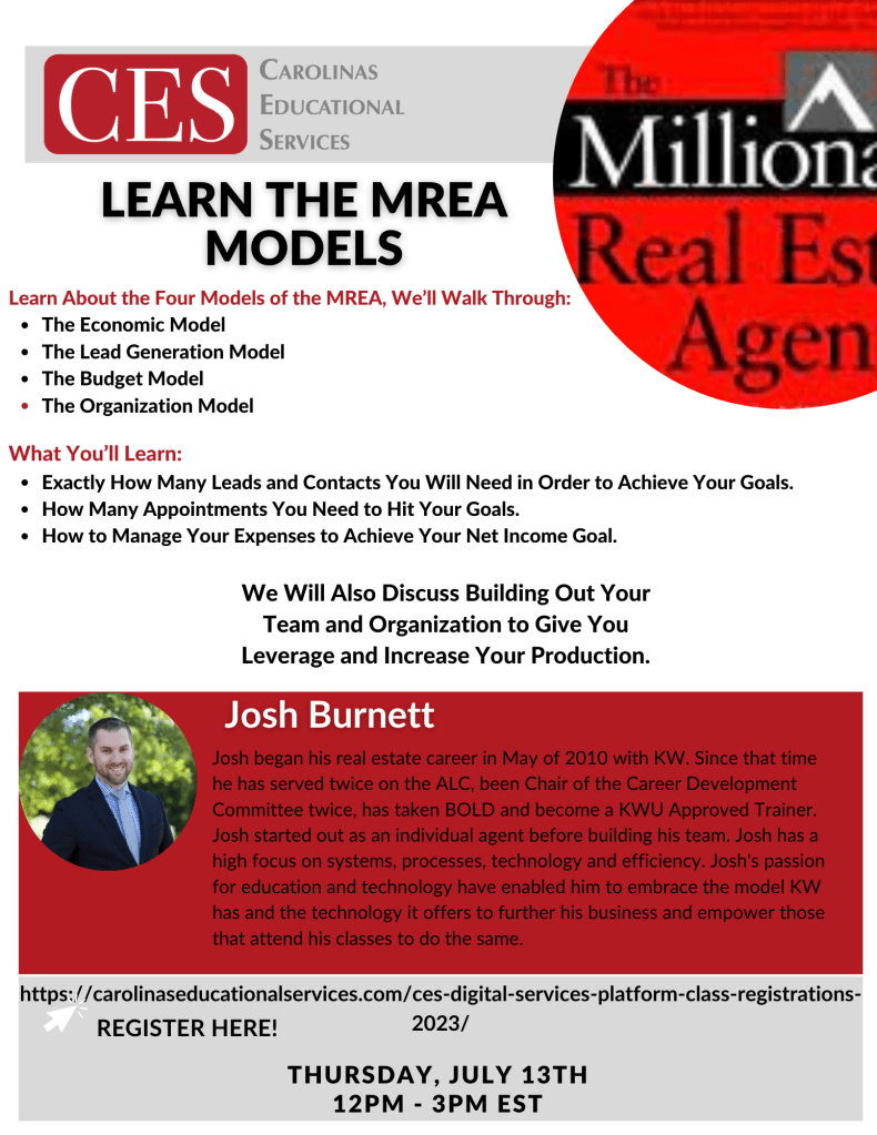 Tomorrow on the CES Digital Platform – Learn the MREA Models with Josh Burnett! Class starts at 12 Noon – bring your lunch and join Josh!