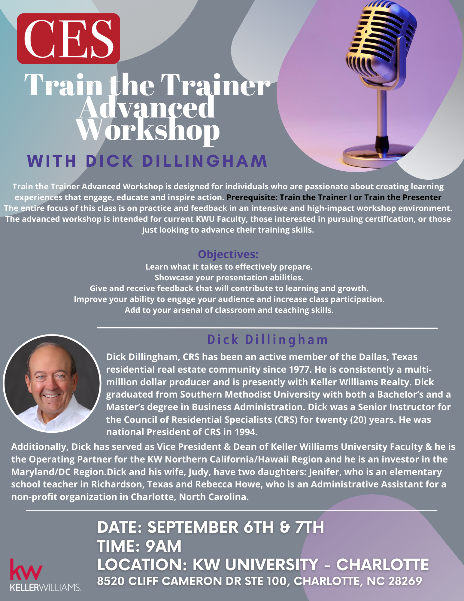 CES will be hosting Train the Trainer Advanced Workshop with Dick Dillingham on September 6th and 7th!