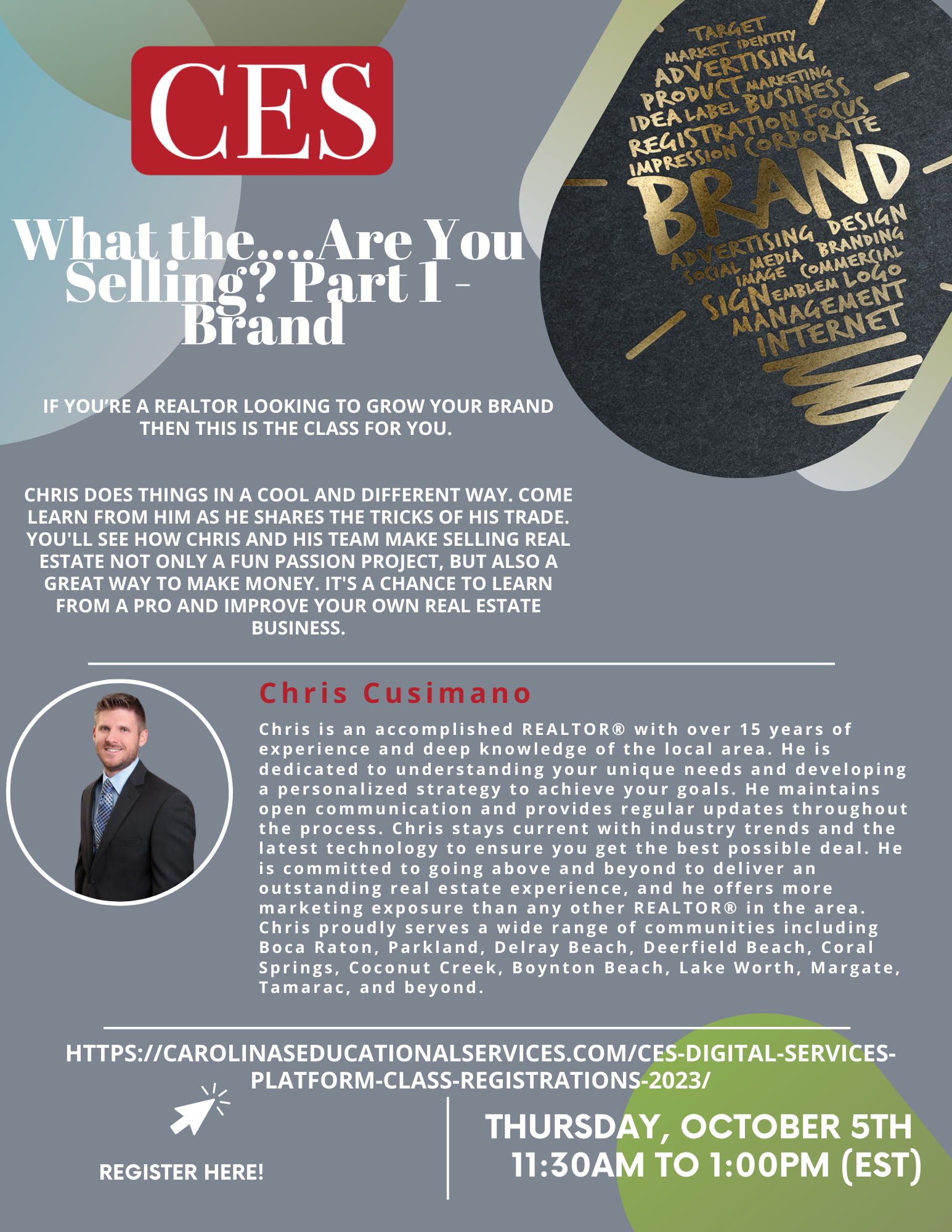 Join Chris Cusimano with What the…are you Selling? Part 1 – Brand on Thursday, October 5th at 11:30AM!