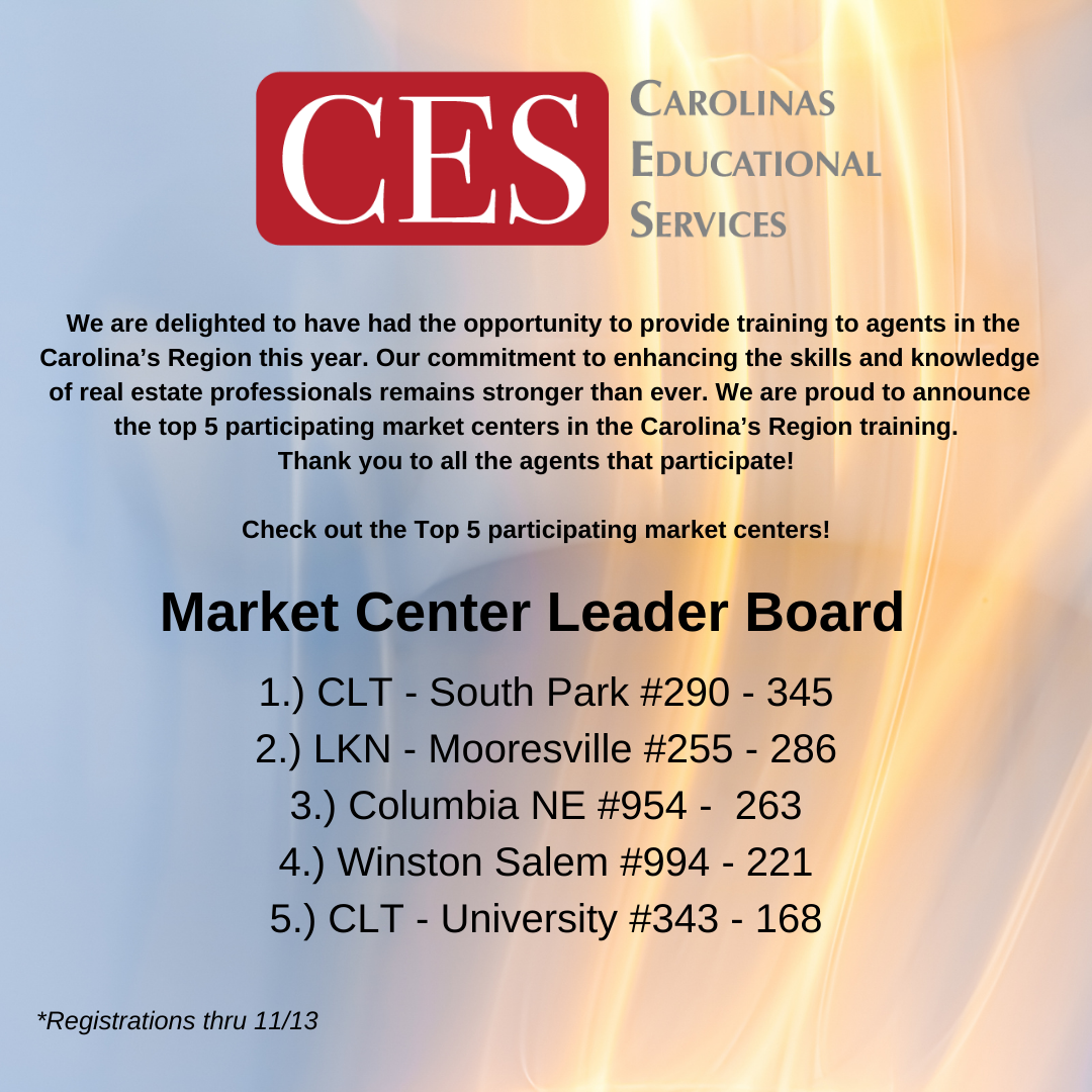 CES is committed to bringing world-class training to agents around the Carolinas and beyond.
