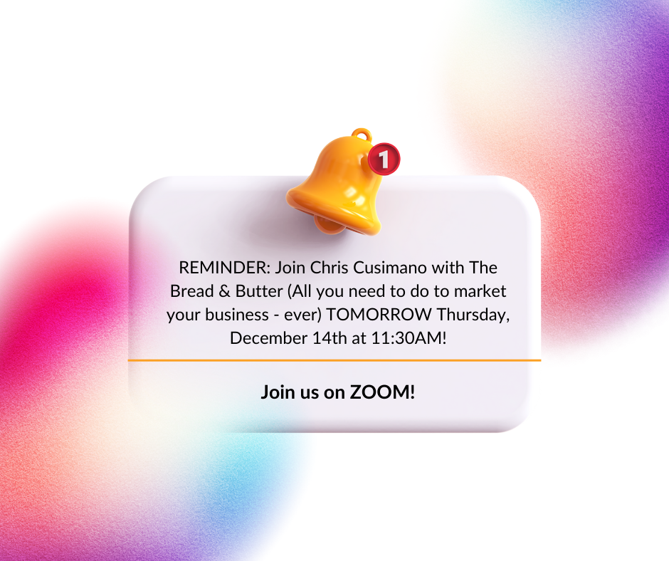 Chris will be joining us on Thursday, December 14th with The Bread & Butter (All you need to do to market your business…ever!) Class starts at 11:30AM.