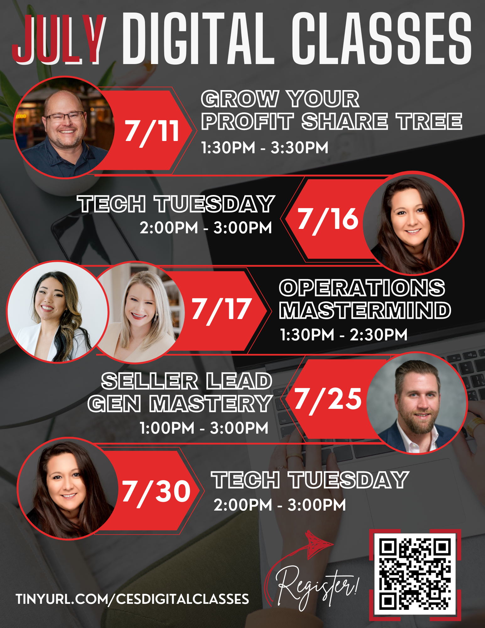 Join CES in July for 5 fantastic Zoom classes led by top producers & instructors to take YOUR BUSINESS to the NEXT LEVEL! ![]()