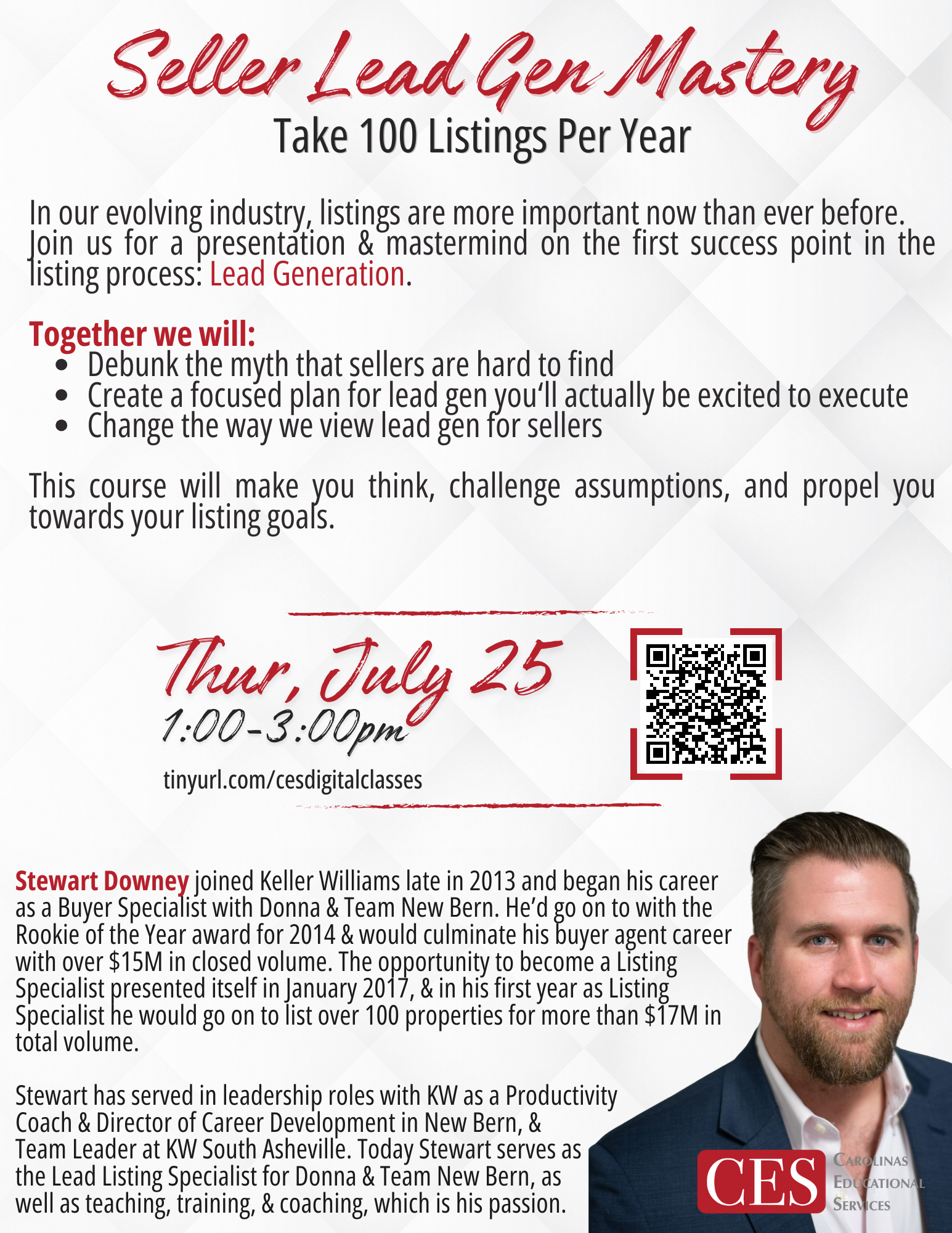 Join Listing Specialist, Stewart Hudson Downey, to learn how he generated 100 listings in his first full year as a Listing Specialist and how YOU can do it, too!