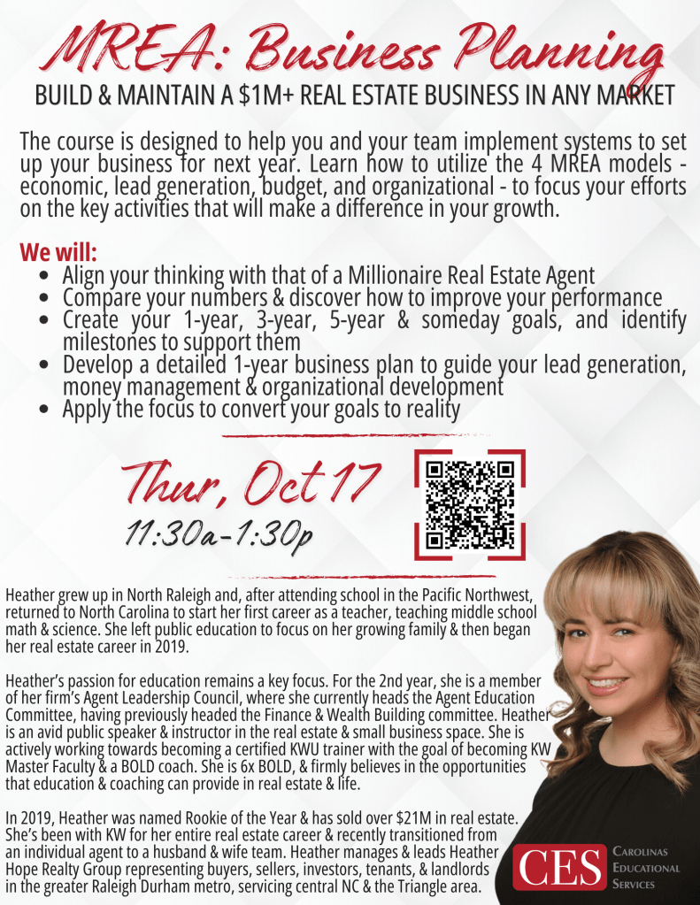This course is designed to help you and your team implement systems to set up your business for next year. Learn how to utilize the 4 MREA models – economic, lead generation, budget, and organizational – to focus your efforts on the key activities that will make a difference in your growth.