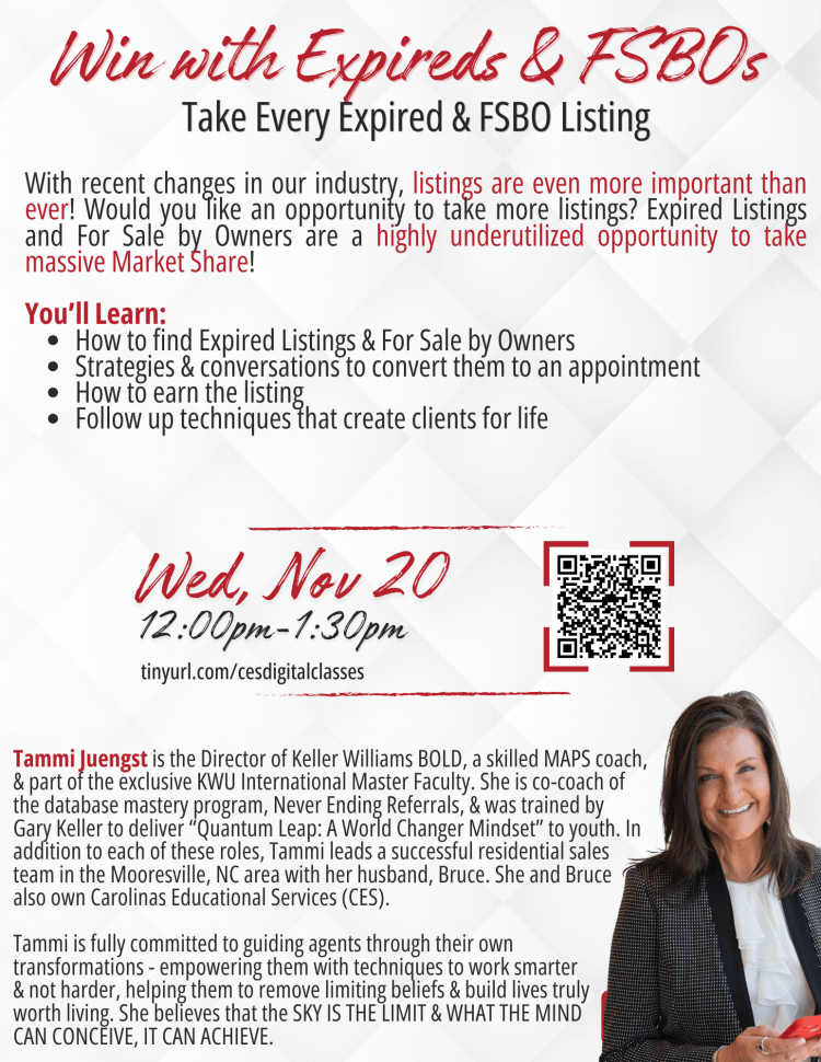 Join Director of BOLD and CES Owner, Tammi Smith Juengst, to learn how to win Expired & FSBO Listings!