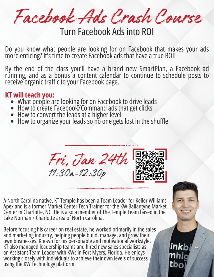 Do you know what people are looking for on Facebook that makes your ads more enticing? Join KT Temple of the Temple Team to learn how to create Facebook ads that have a major ROI!