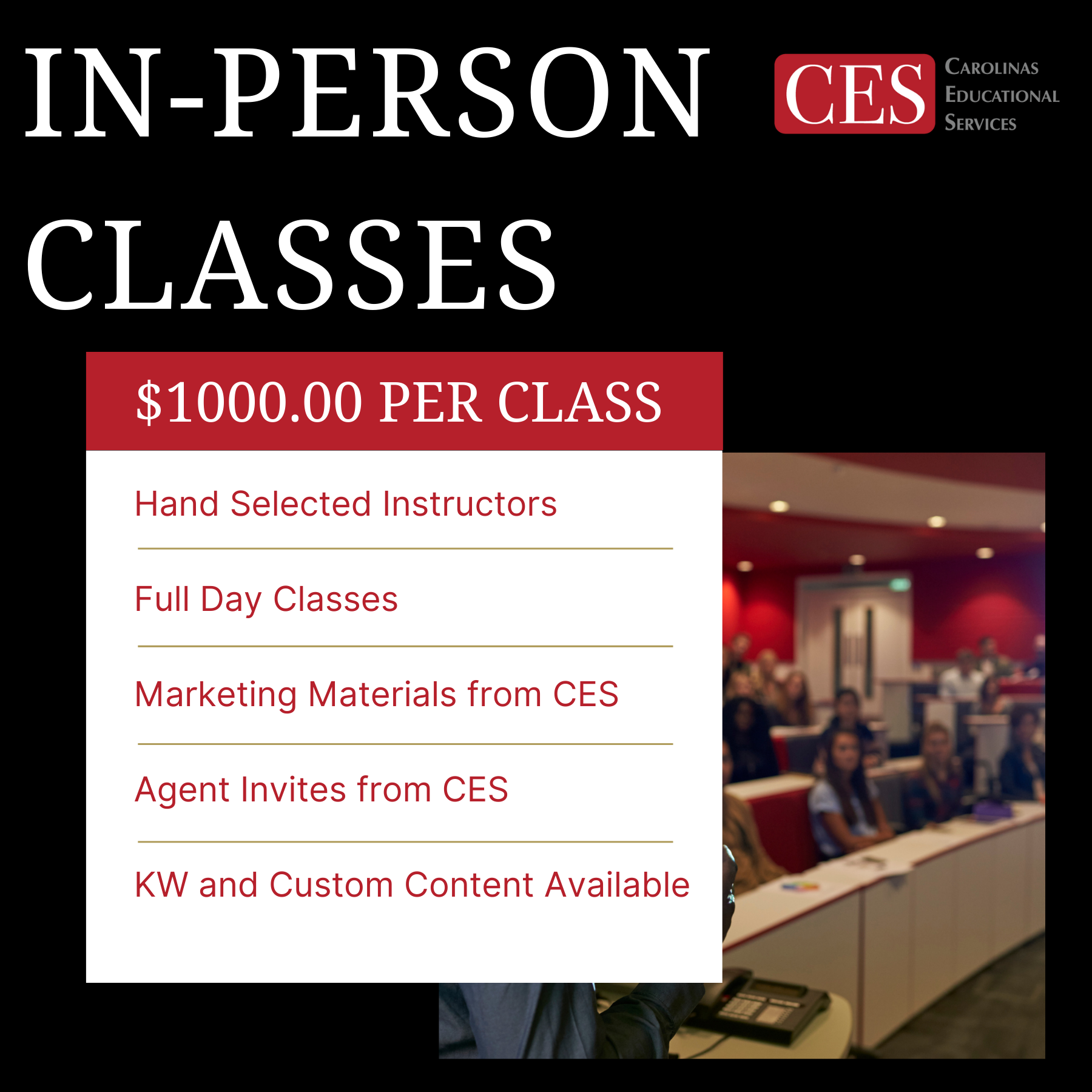 If your market center is in the Carolinas Region and you would like more information about in-person training, please contact us at ces@cesclasses.com.
