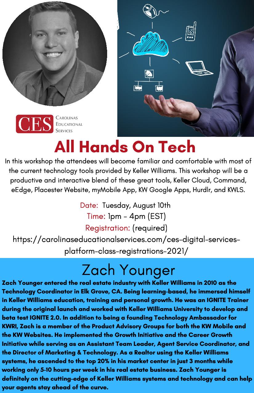 You won’t want to miss Zach as he walks you thru KW Tech! Register thru our website or check with your MC for registration details; http://www.carolinaseducationalservices.com/ces-digital…/